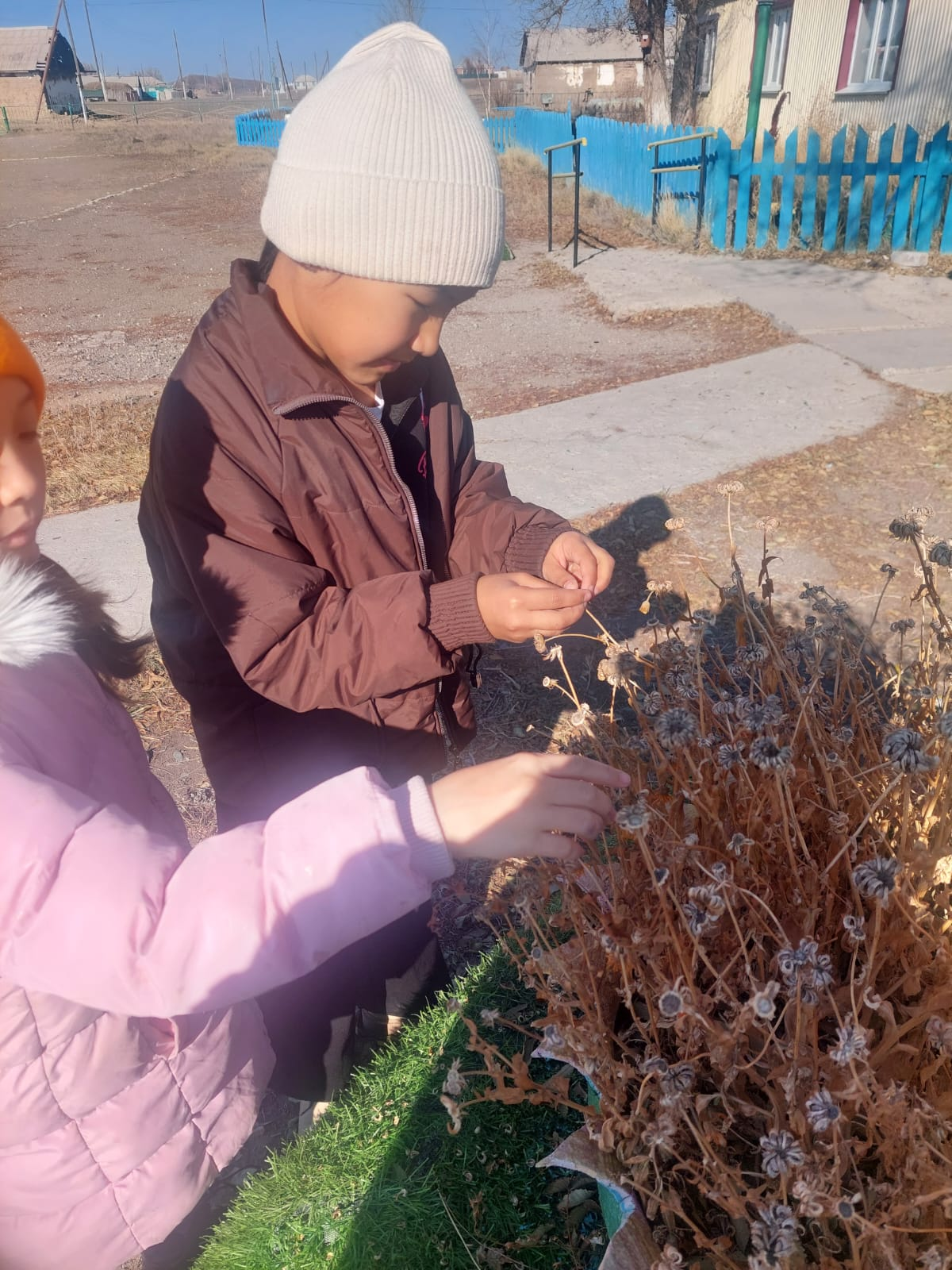 «Горный жалпы орта білім беретін мектебі» КММ-де «Қамқор» жобасы бойынша "Табиғатқа қамқорлық!" атты іс-шара өтті. Бастауыш сынып білім алушылары қатысты. Мақсат – оқушылардың мектеп ауласындағы гүлдерді көктемде отырғызу, суғару және күзде тұқым жинап, қайта отырғызуға үйрету. Гүл тұқымдарын жинау іс-шарасына балалар қызыға қатысты.